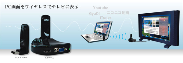 ウィザージャパン(株)は、PC画面をテレビやプロジェクターでワイヤレス視聴できるAVキット「EZR601AV」を発売する。PCにUSB接続することで手軽に利用可能。液晶テレピでのDVDの再生、プロジェクターを使用したプレゼンでの利用に最適となっている。
