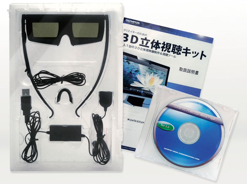 オリンパスビジュアルコミュニケーションズ(株)は、3D立体コンテンツを制作するクリエイター向けに映像再生ソフト・3Dメガネ・コントローラがセットになった「3D立体視聴キット」を発売した。価格は1万4800円で、Amazon.co.jpなどから購入できる。