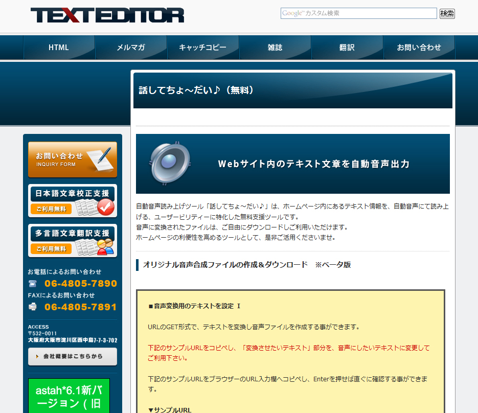 Web上でテキストを読み上げる無料サービス「音声変換サービス/話してちょ~だい♪」