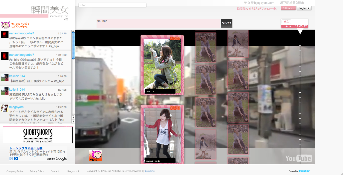 (株)PINKUは、素人美女が平日毎日登場するWebサイト「美女暦」に出演した美女だけのつぶやきが見られるTwitterサイト「瞬間美女」のベータ版をオープンした。