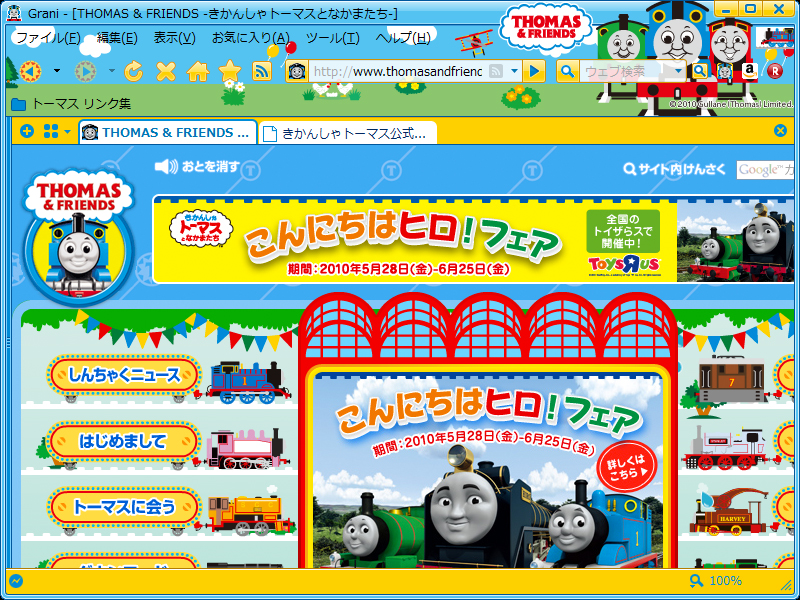 きかんしゃトーマスとGraniがコラボしたブラウザ「THOMAS for Grani」
