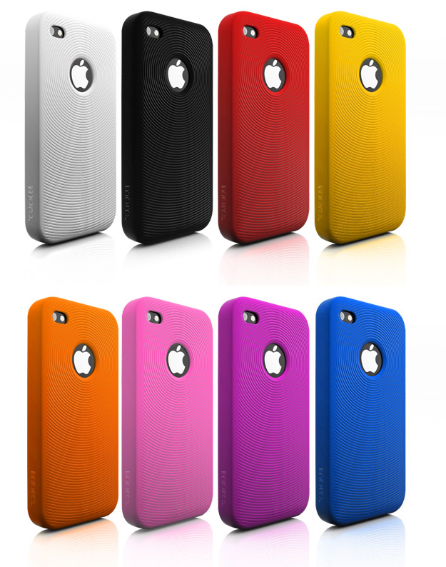 同製品はスリップ防止加工を施した特徴的な渦巻き模様が目を引くケースだ。この模様がAppleロゴを強調し、スタイリッシュかつスポーティな印象となる。素材はシリコン100%で、iPhone 4を傷やホコリからしっかりカバーする。
