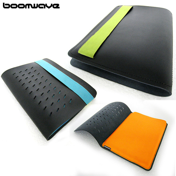 STRAPZ Series for iPadは、外側に本革を用いたモダンなデザインが特徴。内部にはクッション性のある素材が使われており、耐衝撃性にも優れている。収納時はカラーストラップバンドによりiPad本体を固定できる。色はグリーン、オレンジ、スカイブルーの3色を用意。