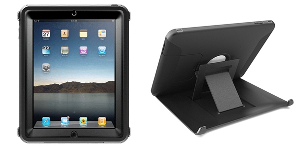 装着したままiPadのすべての機能を使用でき、裏面の蓋を外すことでDockへの接続も可能。Otterbox Defender case for iPadには専用のスタンドが付属する。