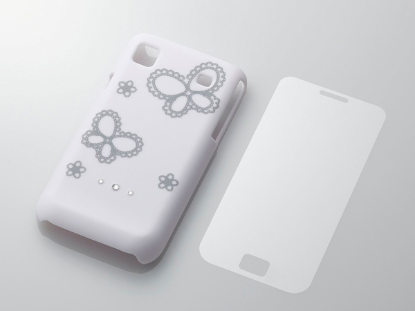 同製品は女性を意識したおしゃれなデザインが特徴的なGALAXY S用ケースだ。ゴシック系レースをモチーフにしたベースデザインに、きらきらと輝くラインストーンが施されている。ケースを装着したまま各種操作や充電・通信ケーブルを接続することが可能。付属品として貼り直しができる液晶保護フィルムが用意されている。