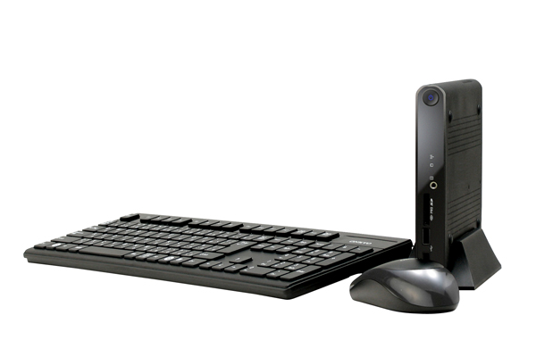 同製品は幅25mm×高さ158mm×奥行き182mm、重さ約440gの軽量薄型ボディを実現したデスクトップPCだ。おもなスペックはCPU Intel Atom N455、メモリ1GB(最大2GB)、HDD容量160GB、OS Windows 7 Home Premium SP1。カスタマイズに対応しており、HDD容量の変更やオフィスアプリケーション・液晶ディスプレイの追加なども行える。