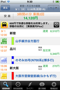 出発駅と目的地を入力するだけで簡単に経路や運賃、所要時間が調べられるアプリ。