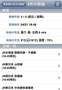 ダイヤの遅延情報をチェックできるiPhoneアプリ。