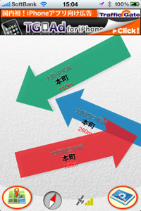 現在の位置から近くにある駅を矢印で表示するアプリ。時刻表もチェック可能。