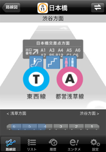 東京の地下鉄の乗り換えや出口、駅施設にアクセスしやすい車両が調べられるアプリ。