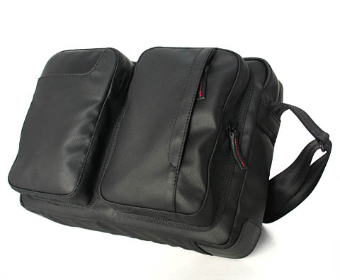 同製品は、iPadまたは11インチクラスの小型ノートPCを収納するための専用スペース(間仕切り)を備え、前胴側にも2分割されたポケットを装備したA4用紙がちょうど入るサイズのショルダーバッグ。フロントのポケットを左右に2個備えており、7インチまでのタブレットやAmazonのKindleなどすぐに取り出したい荷物を入れておけるサイズになっている。撥水加工済みの高強度ナイロン「ドゥースガード」を素材とし、止水ファスナーと撥水糸を使ったウォータープルーフ仕様。