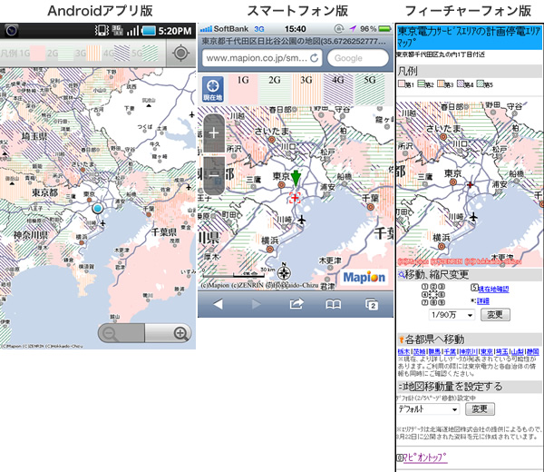 株式会社マピオンは、同社が提供する東京電力管轄の計画停電エリアマップをAndroid端末で確認できるアプリ「東京電力計画停電エリアマップ」の提供を開始した。Androidマーケットから無料でダウンロードできる。