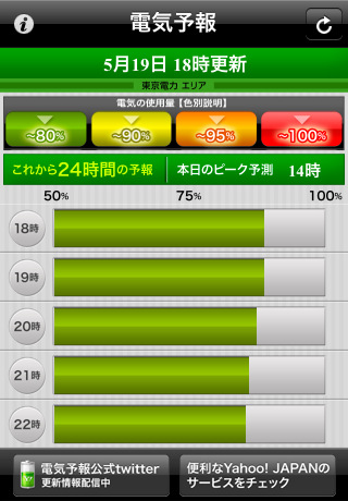 ヤフー株式会社は、東京電力管轄内の電力使用に関する情報を提供するアプリ「電気予報」の配信を開始した。
