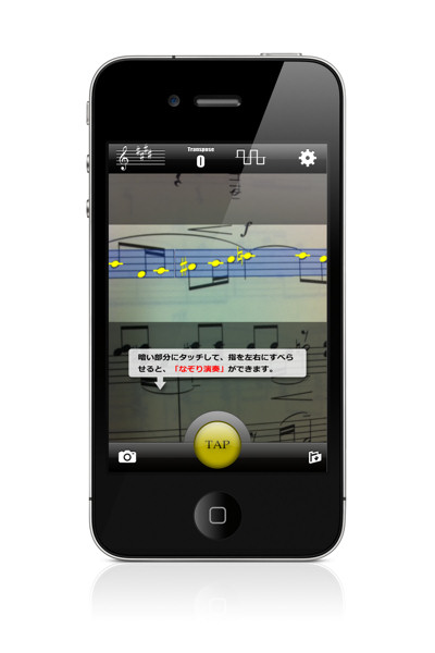 同アプリは楽譜にカメラを向けるだけで五線や音符、臨時記号を瞬時に認識し、音データに変換できる「リアルタイム楽譜認識エンジン」を搭載したアプリで、画面にタッチしてすぐに音楽を演奏できる。印刷楽譜だけでなく、手書き風楽譜や、多少の明暗や色むら、湾曲、シワ、歪みのある楽譜でも認識可能だ。