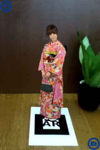 同アプリは企業が登録した広告/プロモーション用のコンテンツをAR(拡張現実)で見られるアプリ。コンテンツを選んでスマートフォンのカメラをマーカーに向けると、現実の画像にデジタル情報が重ね合わされて表示される。なお、マーカーの入手方法は各コンテンツに記載されている。企業によるコンテンツサーバへのデータ登録は有償で、月額課金制となっている。