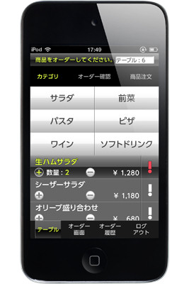機能としてはPOS機能に必須のレジ機能に加えて、テーブル登録や商品マスター登録、値引き、売上集計などの機能を搭載。メニューの追加や価格変更も店舗側で作業可能だ。iPadなどのタブレット端末を使用するテーブル・セルフ・オーダー画面は、エンドユーザーが操作しやすいようにUIを最重視したデザインを採用。iPadをレジに使用することも可能なほか、店員用のハンディオーダー端末にiPod Touchなどの小型端末を使用することもできる。