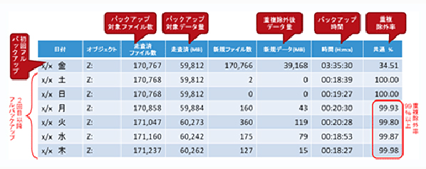 同サービスは、クライアントユーザーの既存のバックアップ環境がどのような状況なのかを検証し、バックアップ・データの重複排除の効果を測定したり、バックアップの課題を抽出することができるというもの。これにより、従来のバックアップ時間との比較やバックアップ容量の削減可能なデータ量が数値化され、これまでのバックアップの無駄を「視覚化」することができる。
