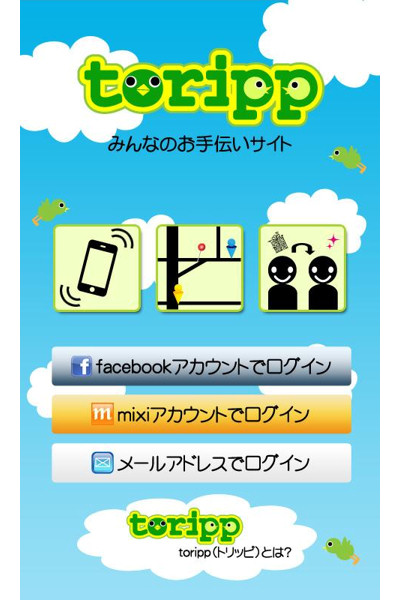 個人同士の「お手伝い」の依頼/引き受けを支援するAndroidアプリ「toripp」