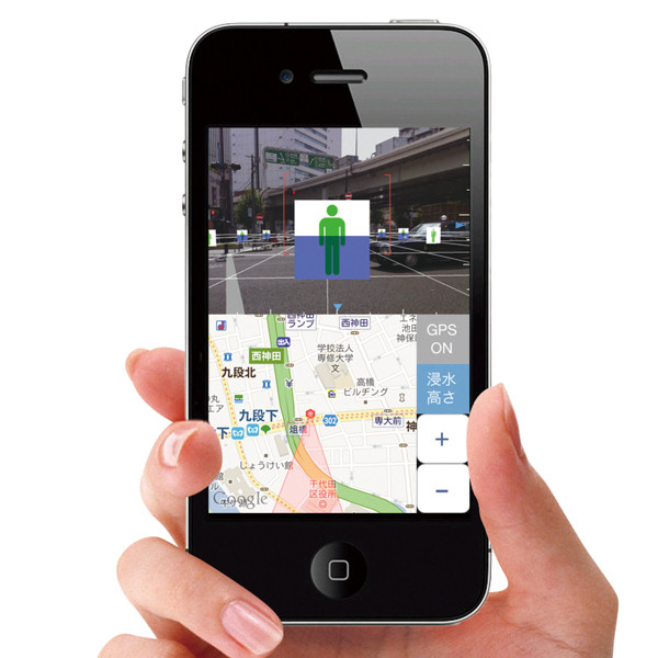同アプリはAR(拡張現実)を利用して防災情報をリアルタイムに可視化するアプリ。浸水の高さをARで実写に合成して表示するほか、避難所の位置や火災危険度、建物崩壊危険度などの情報も表示できる。津波や洪水、地震などの複数のハザード情報や避難所の情報を必要に応じて切り替えることも可能だ。