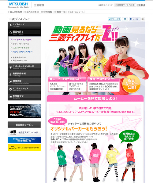 三菱電機株式会社は「動画見るなら三菱ディスプレイだZ!!キャンペーン」を11月1日より開始する。同キャンペーンでは「ムービーを見て応募しよう!」と「買って当てよう!」の2種類の企画を展開。詳細な情報がWeb公開されており、キャンペーンキャラクターとして、人気アイドルグループの「ももいろクローバーZ」も登場している。