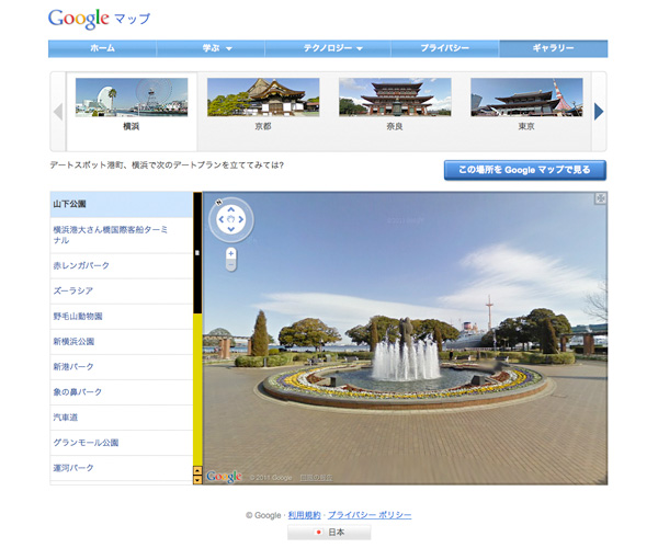 URL:http://maps.google.co.jp/intl/ja/help/maps/streetview/gallery.html#yokohama