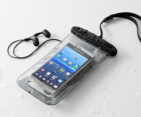 サンワ、iPhone4SやGALAXYなど各種スマホで使える防水ケース
