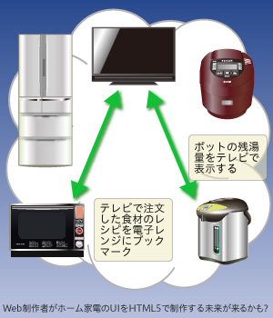 それだけでもWeb制作現場にとっては新しいことだが、筆者はその先に注目している。それは家電用Webコンテンツの制作だ。テレビとホーム家電がWebで繋がるようになれば、家電機器のUIもHTML5で制作できるようになるかもしれないのだ。
