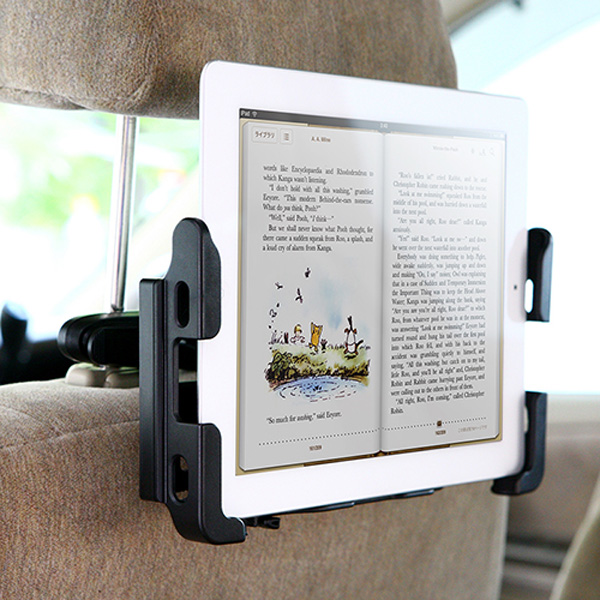 本製品は、自動車の前座席のヘッドレストバーに引っ掛けてからストッパーで固定するタイプのホルダーで、ヘッドレストの差し込み部が直径12mm以下/ピッチ90〜180mmの車種に対応している。タブレットPCを挟み込むホルダー部のアーム幅は140〜250mmの間で調整でき、耐荷重は1kgで、iPad 2/iPadをはじめとする各種の機種で使用することが可能。一例としてiPad 2を設置する場合では、縦/横置きのいずれにも対応していることとなる。