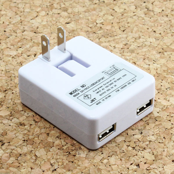 株式会社エバーグリーンは、本体に2基のUSBポートを備えるACアダプター「DN-YACC-USB2AC2PORT」を発売した。本体サイズは55(幅)×68(高さ)×25(奥行)mmで、重量は約60g。上海問屋での購入が可能で、価格は499円となっている。