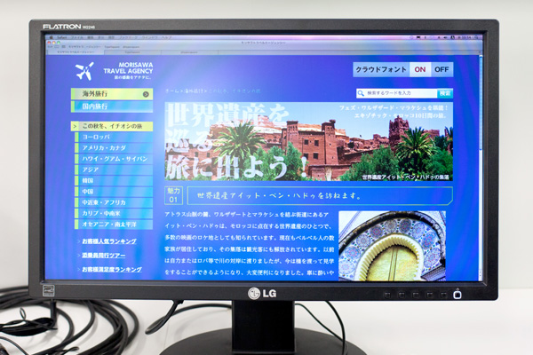 「TypeSquare」は、Webサイト上に高品位なモリサワフォントを表示させるクラウドサービスだ。2月22日のサービス開始時には、154書体が利用できる。専用サイトで利用登録を行うと「TypeSquare」用のhtmlタグが発行され、そのタグを使って書体を指定してサイトを公開すると、ユーザーがWebサイトを開いた際に「TypeSquare」からフォントが配信され、ブラウザ上に表示される仕組みだ。