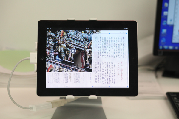 (右)「MC Magazine」で制作した電子雑誌をiPadで表示させたところ
