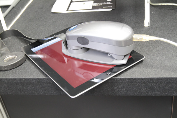 デバイスエミュレーションのデモでは、iPadが使用された。iPadに複数の色を表示させ、その表示特性をセンサーが読み取り、専用のプロファイルを作成する手順だ