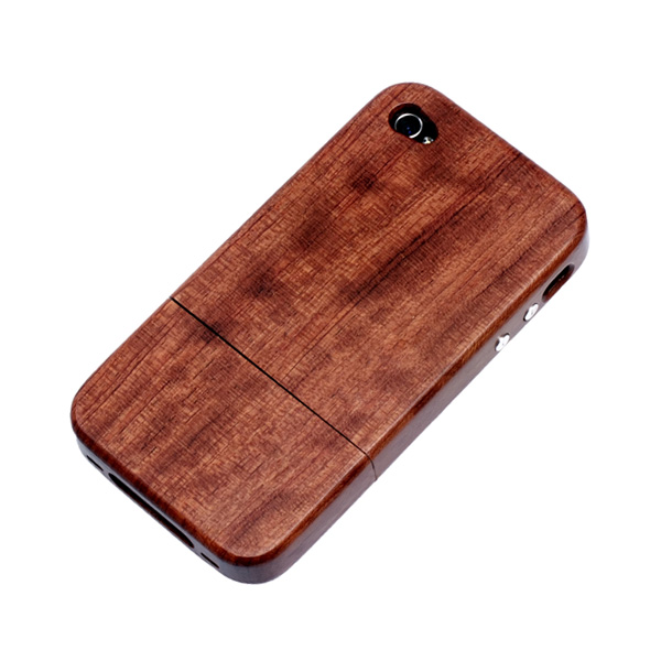 「iPhone4S用天然木製ケース」レッドピアウッド(左)/ウォールナット(右)
