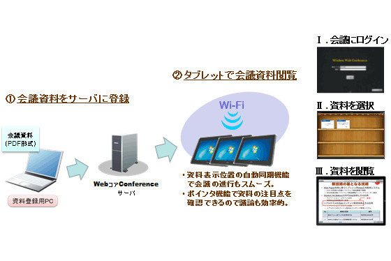同システムは、サーバに登録した会議資料を無線LAN経由で会議参加者の端末に表示させるペーパーレス会議システム。今回の措置により3月16日発売の新しいiPadに対応するとともに、4月末にはクライアントアプリケーションの強化も予定している。