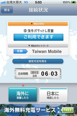 「海外パケットし放題」(iPhone/iPod touch/iPad対応、無料)