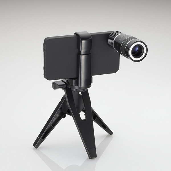 約8倍の光学ズーム撮影が行える望遠レンズキット。デジタルズームのように画像が荒くならず、美しいズーム写真が撮影できる。専用ケースはiPhoneを横向きに立てることができるスタンド機能も用意。レンズの汚れを防止するレンズキャップのほか、小型の三脚が付属している。