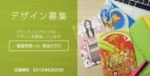 今野印刷株式会社が、同社で立ち上げた自社ブランド“tegami”で行われるグリーティングカードデザインの一般公募。採用されたデザインは、2012年8月に開催される北米最大 規模のギフトショー“New York International Gift Fair 2012 Summer”に出品する予定。なお、未発表作品、他社の公募に応募していない作品に限りるが、応募作品数は問わない。