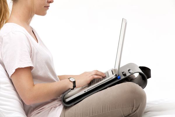 同製品は寝ころびながら操作ができるように傾斜がつけられているほか、手前には開いた本のページやPCがずれないようにストッパーを装備。ストッパーが不要な場合は裏面を使用することも可能だ。本やPCが挟めるクロス型の伸縮性ストラップも用意されている。右上にはゴム製の3つのペンホルダーもあり。