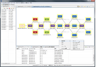 同製品を利用することで、Hinemosの画面上から仮想ネットワークの管理を容易に行えるようになる。仮想ネットワークを構成するネットワークノードや仮想サーバを直感的な操作で描画し、画面上でネットワーク情報を設定するだけで仮想ネットワークを自動的に構成できる。また、物理ネットワークの構成をグラフィカルなマップで表示することも可能だ。