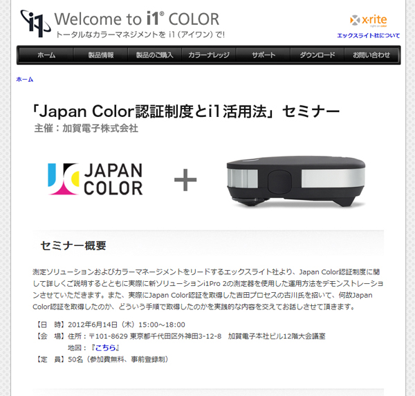 加賀電子主催「Japan Color認証制度とi1活用法」無料セミナー