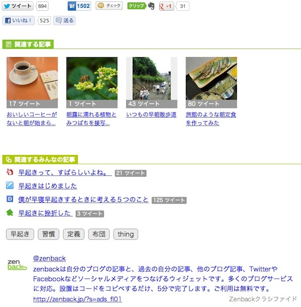 Zenback は2010年6月に公開されたサービスで、ブログ記事下に設置された Zenback を閲覧したユーザーのうち7.5%が関連記事を閲覧、リンクをクリック、ソーシャルボタンを押してツイートするなどのアクションを起こしている。今回のリニューアルでは、これまで以上になじみやすく、ユーザーに対して効果を高めるために新機能が追加された。