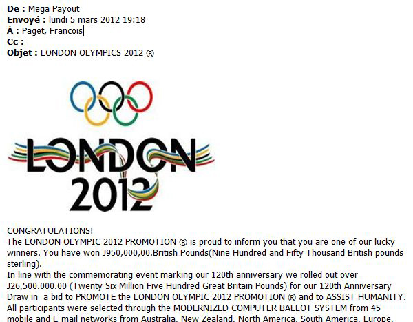 マカフィー株式会社は、2012年7月27日に開催される予定のロンドンオリンピックに関連した詐欺メールが出回っているとして注意を喚起した。