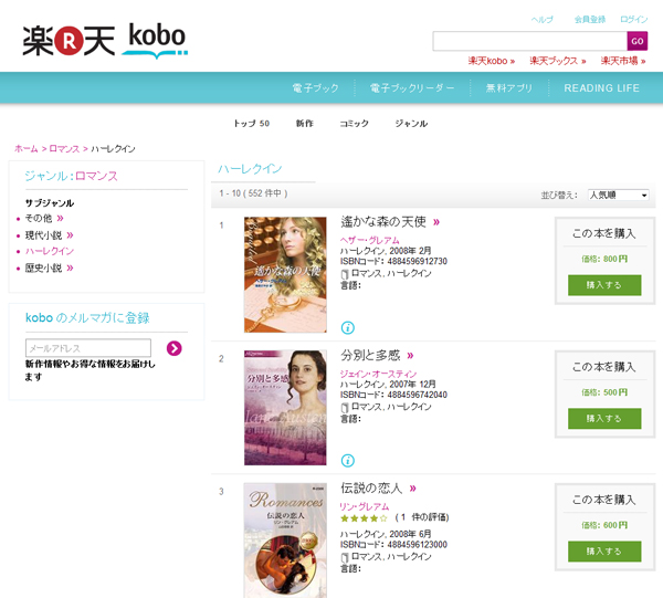 株式会社ハーレクインは、楽天株式会社が運営する電子書籍ストア「koboイーブックストア」にて、小説2600点およびコミック946点を提供開始すると発表した。