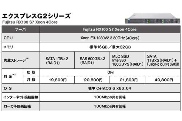 従来の即納対象はSATA HDD搭載サーバのみだったが、新シリーズではSAS HDDやSSD、ioDriveなどの高速ストレージを搭載したサーバも最速10分で利用可能となる。初期費用は無料で、月額料金はSATA HDD搭載モデルが19800円、SAS HDD搭載モデルが20800円、SSD搭載モデルが21800円、SATA HDD+ioDrive搭載モデルが49800円。