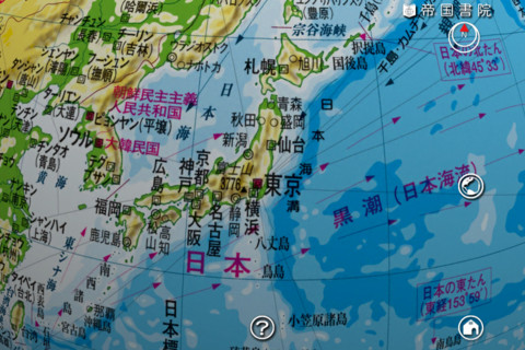 帝国書院、教材用の地球儀と同じデータを使用したiPhone/iPadアプリ「i地球儀」