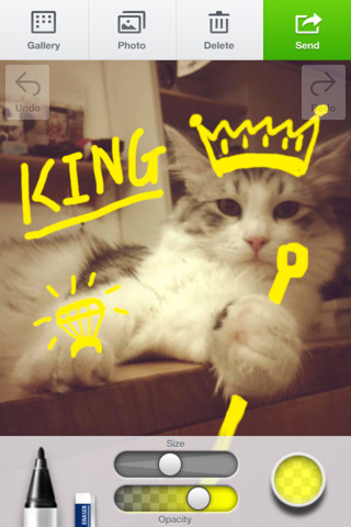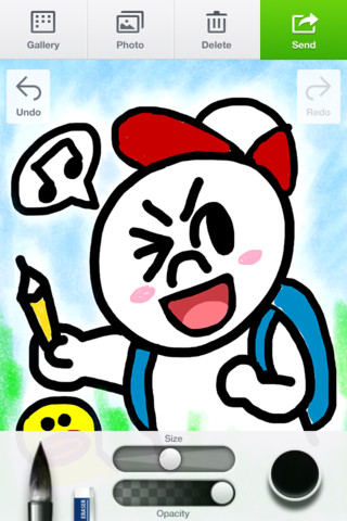 同アプリはブラシツールを使って簡単にイラストを作成・加工し、LINE上の友達に送れるLINE公式アプリ。鉛筆やフェルトペンなど27種類のブラシ、水彩絵の具やクレヨンなど15種類のフォトブラシを備え、ブラシサイズや透明度も細かく調整可能だ。今後はAndroid版アプリも提供する予定だという。
