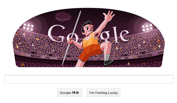 今日のGoogleホリデーロゴはやり投げ―2012年8月6日