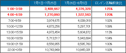 ロンドンオリンピックの影響で深夜のTwitter利用が急増―BIGLOBE調べ