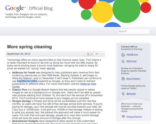 Googleの「大掃除」でAdSense for Feedsを終了、PicasaとDrive統合も