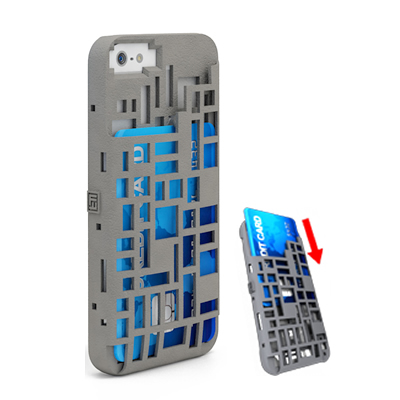 同シリーズは3D造形の幾何学的なデザインと、カード類を収納できるカードポケットを備えたiPhone5ケース。巨匠モンドリアンの、水平と直接の直線と三原色からなる幾何学的な抽象画「コンポジション」をイメージしている。